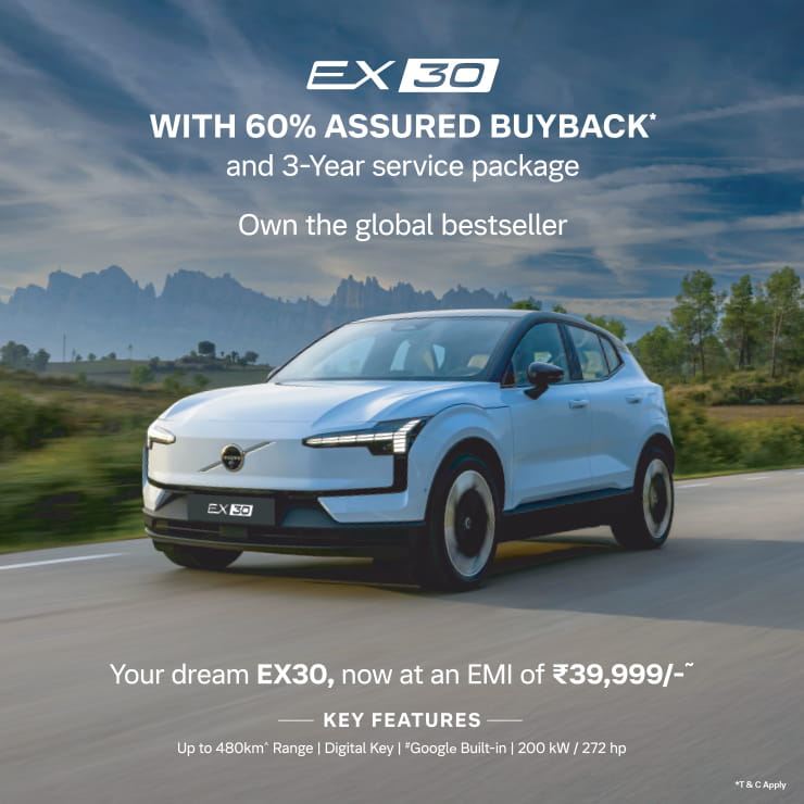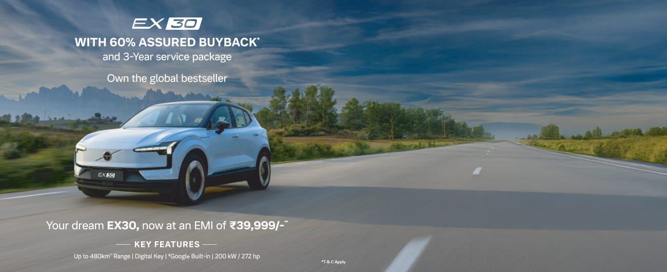 | Volvo EX30 | ₹39,999/- EMI | 60% Assured Buyback + 3-Year Service |